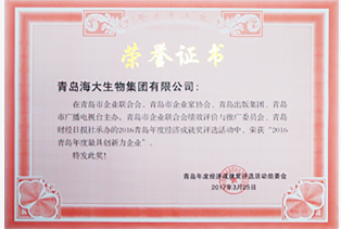 - 海大生物集團(tuán)榮獲"青島年度最具創(chuàng)新力企業(yè)"經(jīng)濟(jì)成就獎。